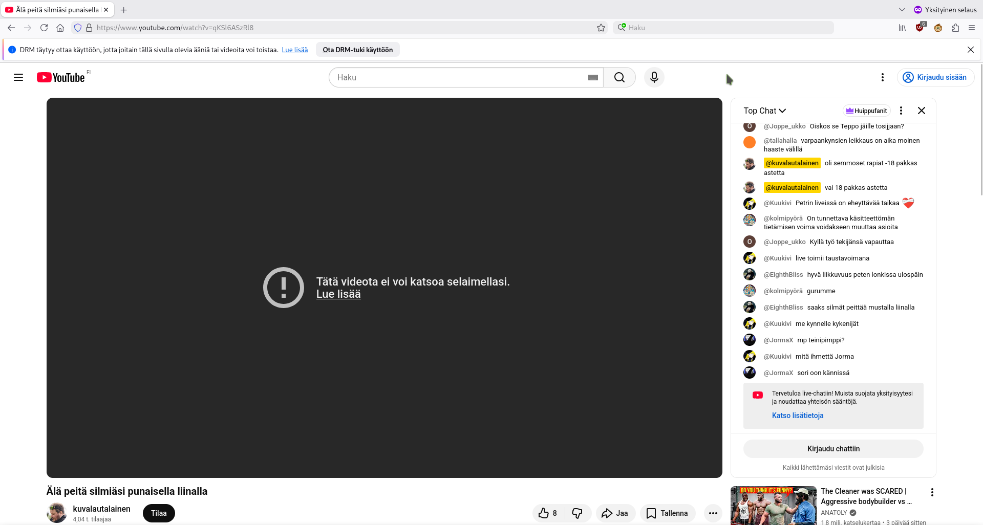 Vapaa-ajallakaan ei ole mitään. Kuntosalillakin vain käyn enkä kehity kun en osaa tai jotain eikä mitään personal traineriakaan voi ottaa koska sittenhän joutuisin kohtaamaan todellisuuden kuinka paskaa olinkaan. Ja mikä vitun elämän sisältö joku kuntosali edes olisi? Miksen tee minua kiinnostavia asioita? En minä enää edes tiedä mikä minua kiinnostaisi. Retkeily, joo, enhän minä pysyt lähtemään edes metsään teetä juomaan näillä pakkasilla kun olen jäätynyt paska, sitten pitäisi muka lähteä vielä johonkin kauemmas. Musiikkihommat voisi varmaan kiinnostaa, tekisin omakustanne ärinä-speedmetallia omassa studiossa. No enpäs tee, teininä jaksoin opetella kitaransoittoa jonkun 3 päivää yhteensä ja nyt on jo keski-ikäisenä liian myöhäistä. No ei tietenkään olisi, mutta onpas, koska olen paskaa. Voisinko olla taiteilija-anos kun lapsena piirtelin helvetisti jne.? No en voi koska en ole ikinä harjoitellut ja nyt olen paskaa jne. sössön mössön. Voisinko edes tuottaa eeppistä nc oc:ta ja kirjoittaa koko nyymilaakson historian? No en, koska olen tyhmä ja vammainen.