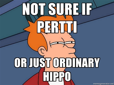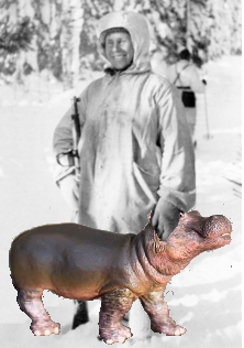 Pertti paljastaa toimineensa legendaarisen Simo "Simuna" Häyhän apurina talvisodassa; Pertti houkutteli pahaa aavistamattomat neuvosto-sotilaat aukealle meluamalla, ja kun sotilaat miettivät mitä vittua virtahepo tekee pohjoisessa Häyhä ampui.