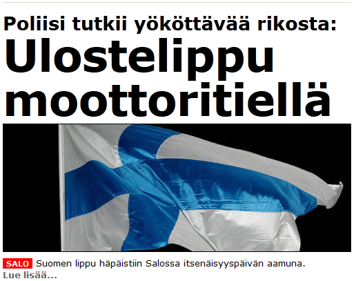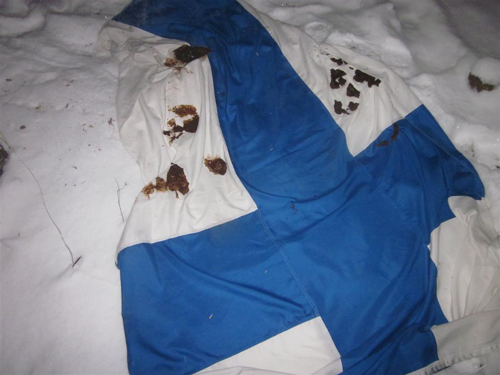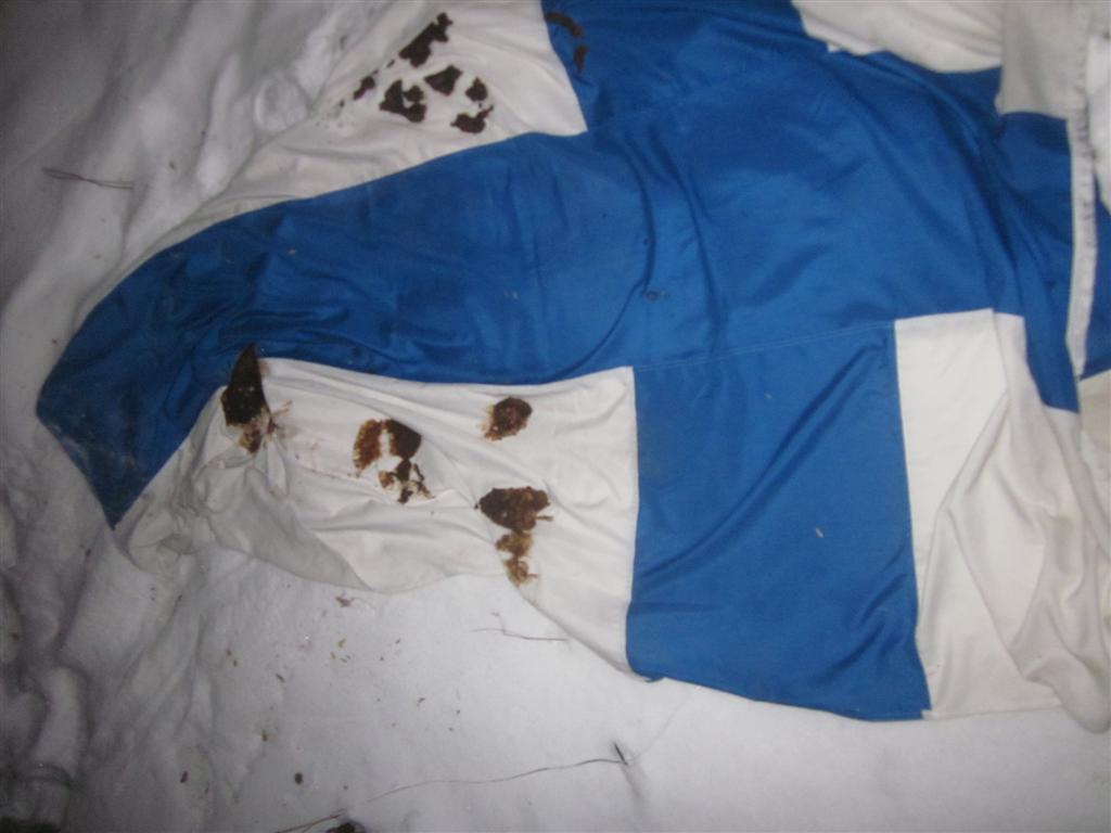 Olisit edes ripustanut lippusi siten, että risti on ylösalaisin.