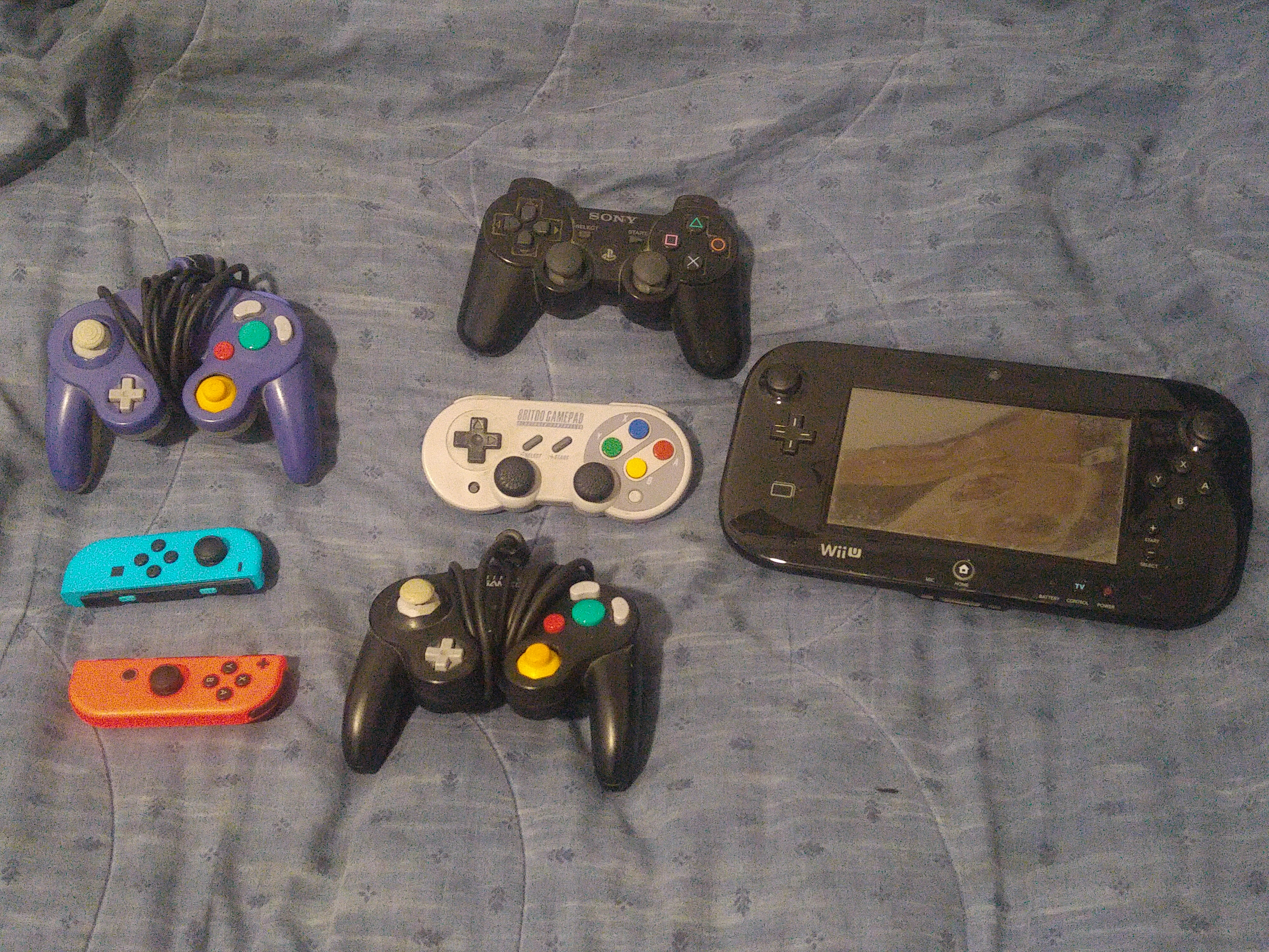 PSP, PS2 ja PS3-ohjaimet. Sitten on kanssa semmonen joysticki, jota ei tosin voi käyttää ohjaimena kuin sen sisäisessä emulaattorissa olevissa peleissä. Tietty sitäkin luultavasti voisi aika helposti modata, muttei kyllä kiinnosta, kun en pelaa yhden napin pelejä.
