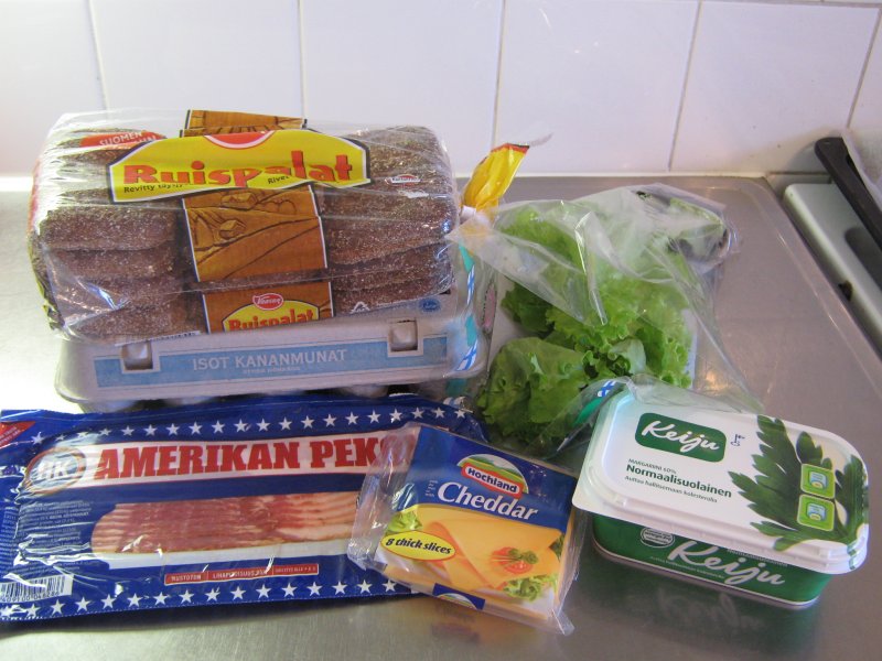 Ketsuppi, Ananas murska, tonnikala hiutaleet, juusto, paahtoleipä