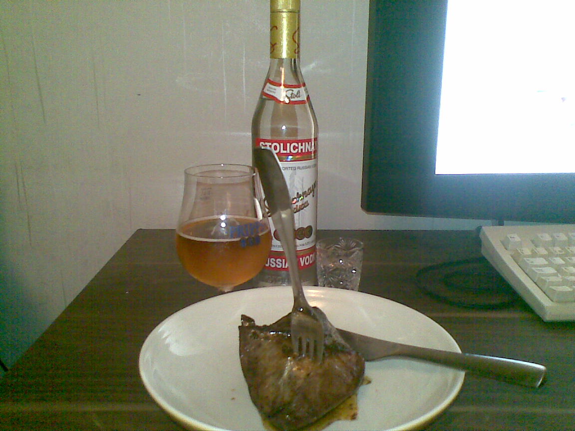 eilen tosiaan oli alkuruoaksi vuohenjuusto-salaattia ja valkosipulipatonkia. Pääruoaksi poron sisäfilepihvit paistettuna, itsetehty puolukka-chatney, bataatti-perunamuussi, suppilovahverokastike. Jälkiruoaksi philadelphia pohjainen puolukka-kinkuski jäädyke. Punaviini, kalja, siideri